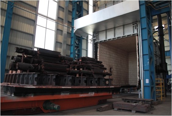 此设备是燃油式台车炉,为我公司专用退火设备。燃油车采用计算机自动控温控制方式,上限温度800°C;温控精度为10°C;满装炉重量120T。此设备可用与普通碳钢及低合金钢焊接件加工前的退火处理,亦可以作为低合金钢在火焰切割后的消应力处理。